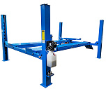 Четырехстоечный электрогидравлический подъемник грузоподъемностью до 4 тонн, предназначен для подъема легковых автомобилей, внедорожников и легкого коммерческого транспорта с последующей фиксацией на рабочей высоте для проведения слесарных работ и сход-развальных работ с технологией 3D, так и без неё, а также с прокаткой. Автомобильный подъемник оснащен траверсой с управлением через кран на главной стойке. Длина платформ: 4700 мм. Расстояние между колонн: 2850 мм. Вес: 1115кг.