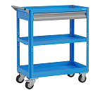 Корпус выполнен из листовой стали толщиной от 0,6 до 1,5мм., покрыт полимерной порошковой краской. С выдвижным ящиком на шариковых телескопических направляющих. Комплект резиновых ковриков. Общая равномерно-распределённая нагрузка на тележку - до 100кг. Верхняя и средняя полка имеют высоту борта 40 мм., нижняя полка имеет высоту борта 60 мм. Размер 950х800х450 мм.
