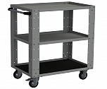 Тележка инструментальная открытая, трехполочная. Идеально подходит для перемещения и хранения небольших агрегатов (стартеры, генераторы, и т.д.) в слесарном и кузовном цеху. Размеры, мм: 855x750x500. Вес, кг: 23