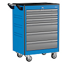 6 ящиков. Для хранения инструмента в ЕВРОЛОЖЕМЕНТАХ. Боковые панели с перфорацией (для установки аксессуаров). Цельносварная конструкция корпуса тележки. Центральный замок Euro-Lock. Шариковые направляющие полного выдвижения. Размеры (высота x ширина x глубина): 850 х 700 х 460 мм. Вес: 58,8 кг.