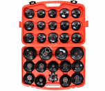 Съемники изготовлены в форме чашек из прочного металла и способны выдерживать большие нагрузки. Каждая чашка снабжена усиленной площадкой с посадочным квадратом. Конструкция съемников в форме крышек исключает повреждение масляного фильтра при его снятии и установке. Масляный съемник "чашка" - набор 30 предметов. Применяется с инструментом под квадрат 1/2" или ключ 21 мм. В комплекте: 28 чашек для масляного фильтра + съемник масляных фильтров краб 63-102 мм + Переходник F1/2"хМ3/8".