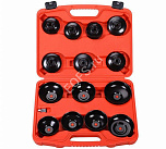Съемники изготовлены в форме чашек из прочного металла и способны выдерживать большие нагрузки. Каждая чашка снабжена усиленной площадкой с посадочным квадратом. Конструкция съемников в форме крышек исключает повреждение масляного фильтра при его снятии и установке. Набор съемников масляных фильтров ("чашки") - 15 шт. Возможность использовать привод с посадочным квадратом 1/2"; 3/8"; гаечный ключ или торцевую головку на 21 мм.
