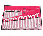 Набор ключей рожково-накидных в планшете 17 предметов. В комплекте: 8, 9, 10, 11, 12, 13, 14, 15, 16, 17, 18, 19, 21, 22, 23, 24, 27 мм. Зеркальная полировка. Материал: хром-ванадиевая сталь, повышающий износостойкость инструментов.