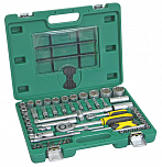Набор головок и вставок торцевых в чемодане 96 предметов. В наборе: головки 1/4 (6РТ), головки глубокие 1/4 (6РТ), головки 1/2 (6РТ), головки глубокие 1/2 (6РТ), трещотка 1/4", удлинитель 1/4", вороток с плавающей головкой 1/4", кардан 1/4", вороток-отвертка, удлинитель 1/4", трещотка 1/2", удлинитель 1/2". свечная головка 1/2" 14 мм, свечная головка 1/2" 16 мм, кардан 1/2", держатель для бит 5/16", переходник 3/8 (F)х1/2(М), головки с насадкой 1/4 (биты S2, длина 37 мм.), биты 5/6" (S2, длина 30 мм.)