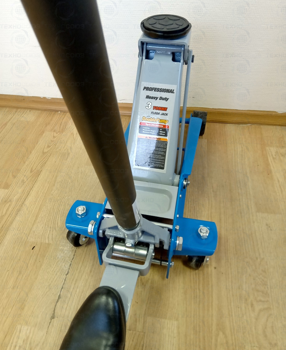 Двухплунжерный механизм быстрого подъема. С педалью. Высота подъема 120-460 мм. Гидравлический подкатной домкрат грузоподъемность 3,0 т. Домкрат рекомендуется к применению в шиномонтажных мастерских и автосервисах. Цвет темно-синий.